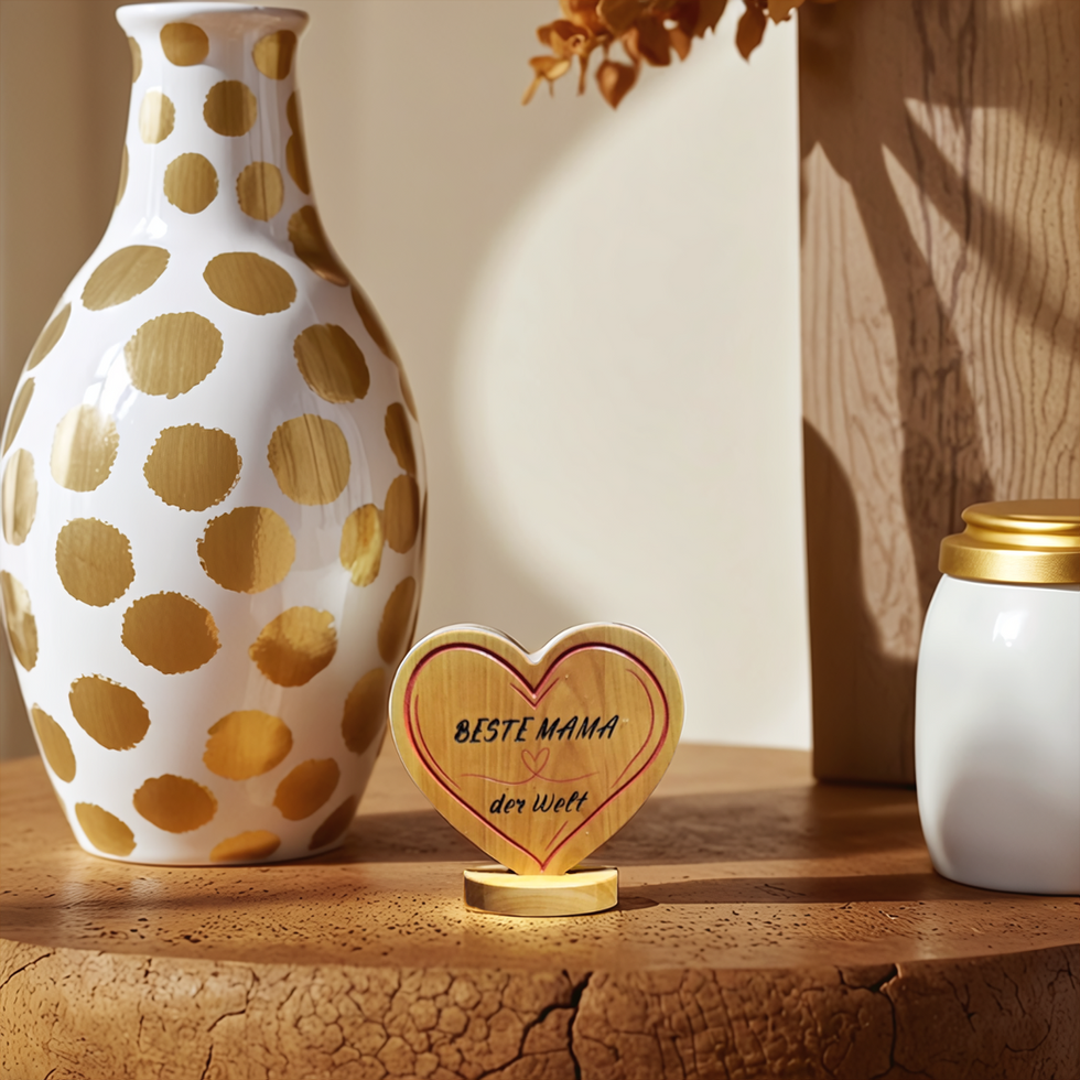 Geschenk Muttertag 'Herz auf Sockel' Eingraviert in Farbe, beste Mama der Welt.
